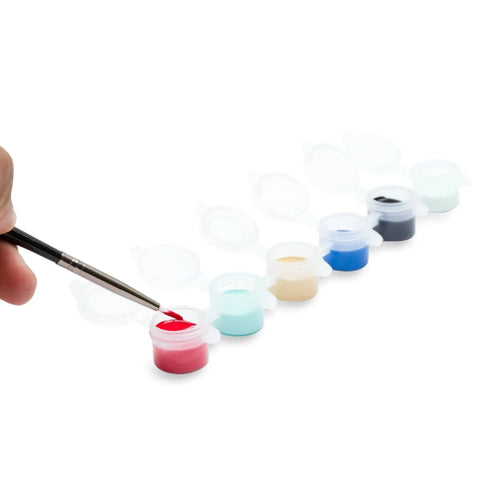 These reusable, flexible paint cups are ideal for the mixing and storing of paint. Included is one strip of 6 paint cups that each hold up to 1/6th of an ounce of paint. Each cup contains an attached lid to provide an air-tight seal and to prevent misplacement.