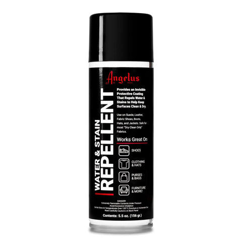 When properly applied, Angelus Water & Stain Repellent will provide an invisible protective coating that repels water & stains to keep shoes clean and dry.